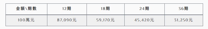 以100萬為例,月付金額估算(實付金額由和潤提供為主):