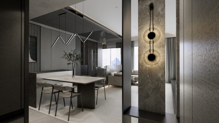 金屬與玻璃:燈具、家具配件等局部點綴金屬(如黃銅、黑色金屬)或玻璃材質,增添現代感與精緻度。